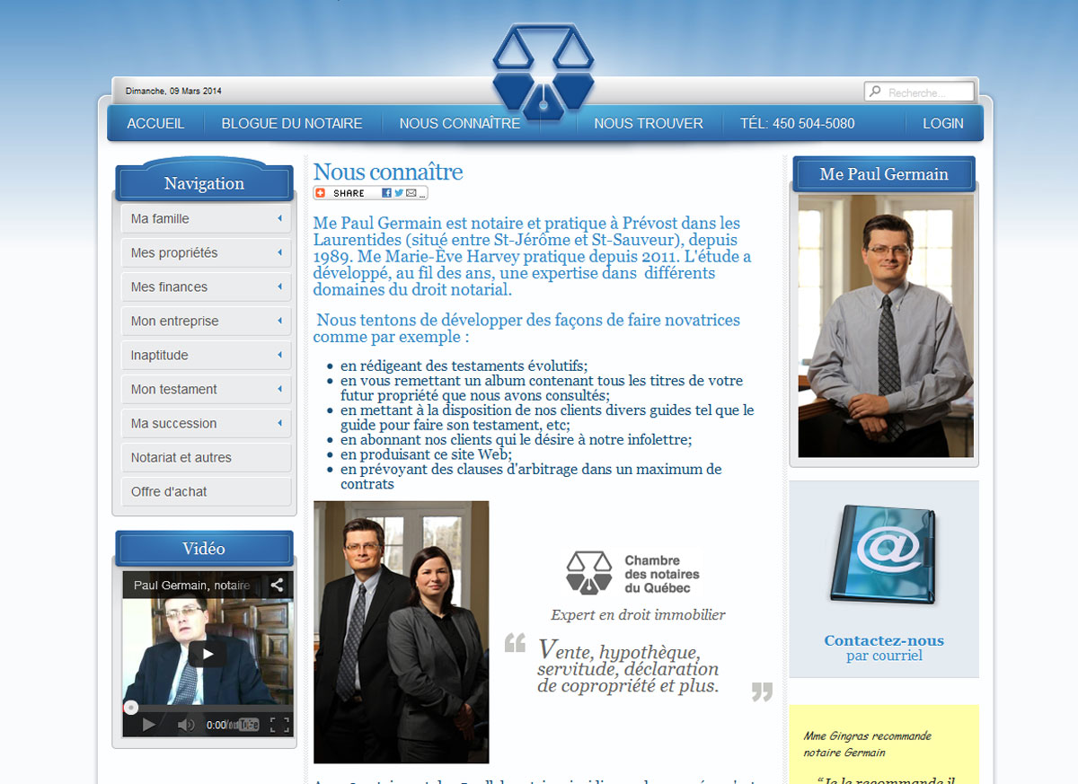 Un site Web professionnel, avec articles et outils intégrés sur une plateforme CMS.
